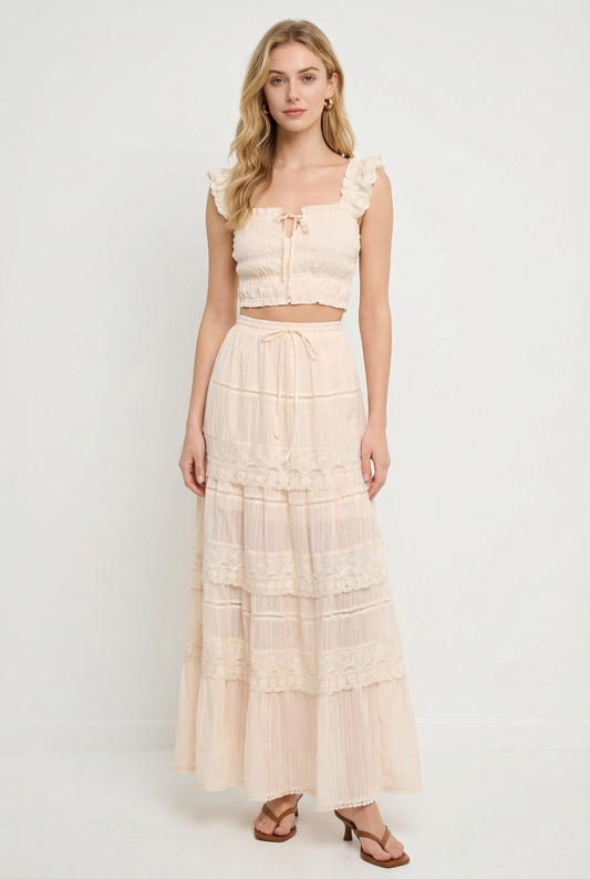 The Aubrey Cardigan features delicate pointelle knit detailing and subtle ruffle accents that add texture and charm. Designed with a classic button-front closure and a flattering fitted silhouette, it’s perfect for layering or wearing on its own. Pair it with denim for an effortlessly polished everyday look.