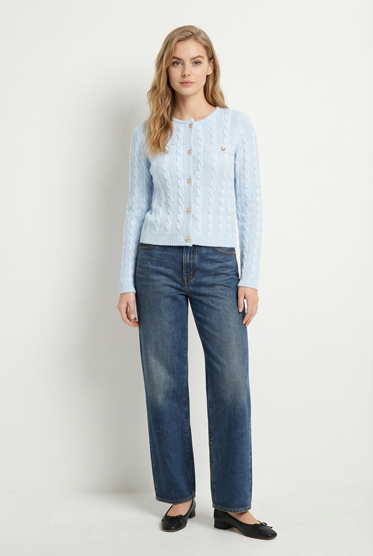 Sweet meets structured in this eyelet sleeve sweater. Crafted with a textured knit body and finished with delicate, puffed eyelet sleeves, it blends cozy comfort with feminine flair. The contrast of soft lace and bold ribbing makes it perfect for dressing up denim or elevating your everyday look.