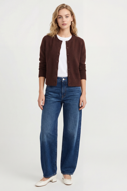 The Medina Cardigan is the ultimate timeless staple. With a slightly cropped fit and soft knit texture, it pairs effortlessly with everything from tailored trousers to denim. A classic layer that brings understated polish to any look.