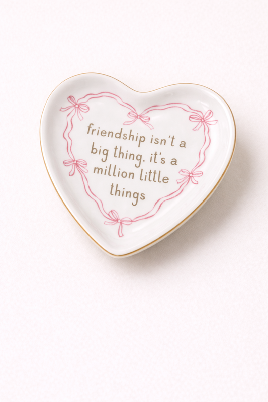 Delicate and charming, this Bow Trinket Tray adds a sweet touch to any space. Designed in a soft pink hue with a dainty bow silhouette and gold-trimmed edges, it’s perfect for holding rings, earrings, or small keepsakes. Style it on your nightstand, vanity, or desk for a pretty yet practical accent.